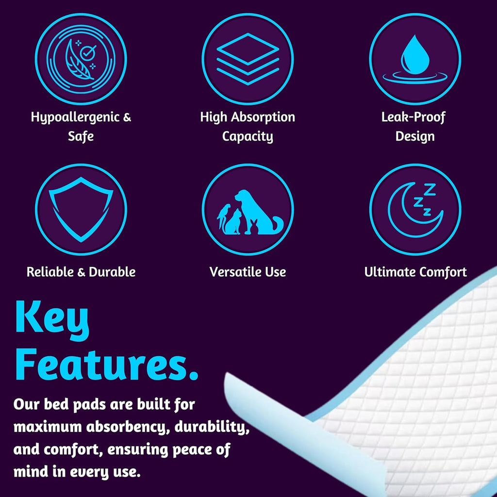 • Versatile Use: DryEase Bed Pads are ideal for managing incontinence, pet training, or protecting baby bedding. Their generous size and disposable design make them a reliable choice for many situations.
